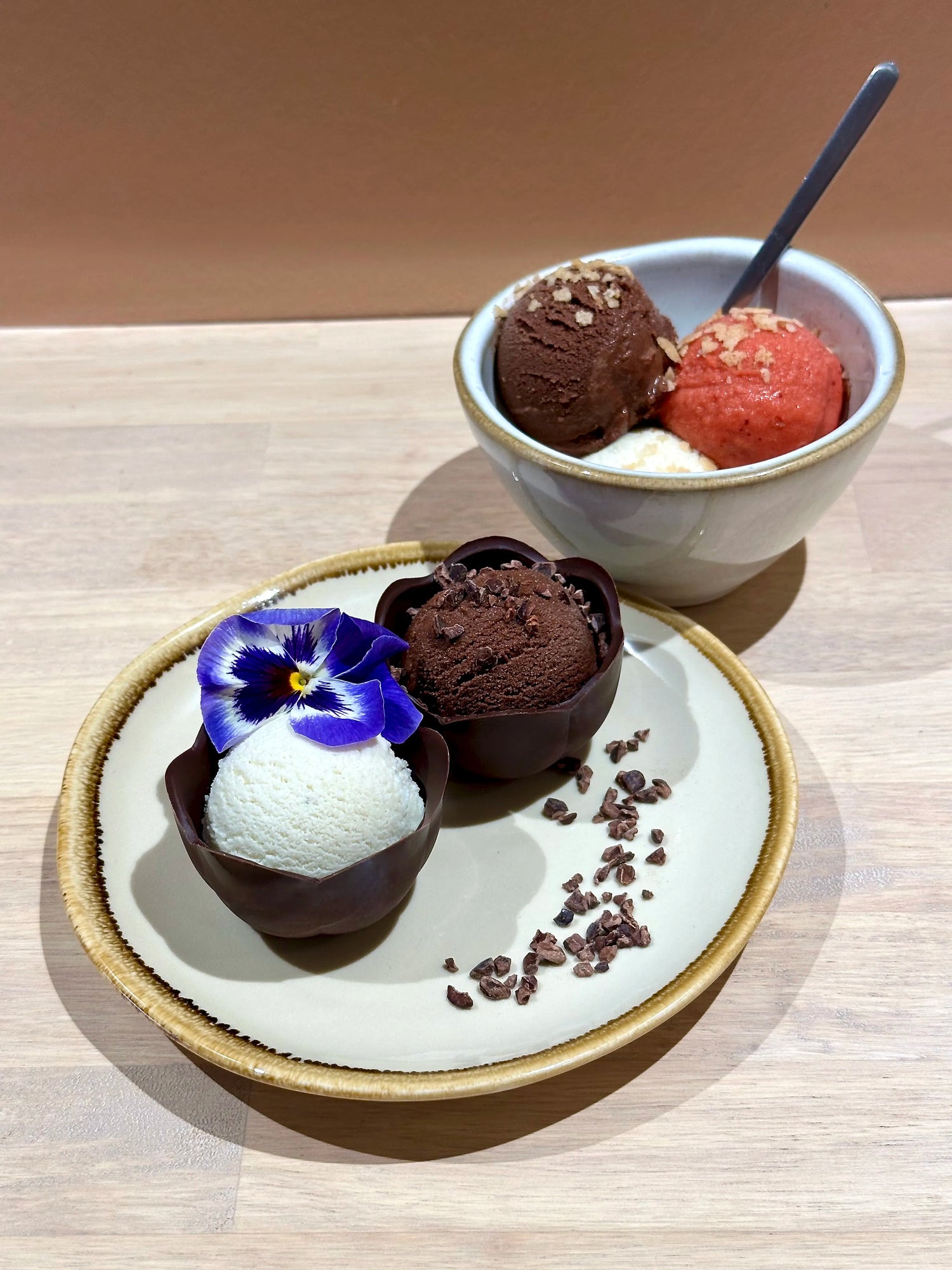 Sorbets : Chocolat noir 72% Haïti* ou 78% Guatemala* - Mucilage (pulpe de cabosse) ou Sorbet du moment*