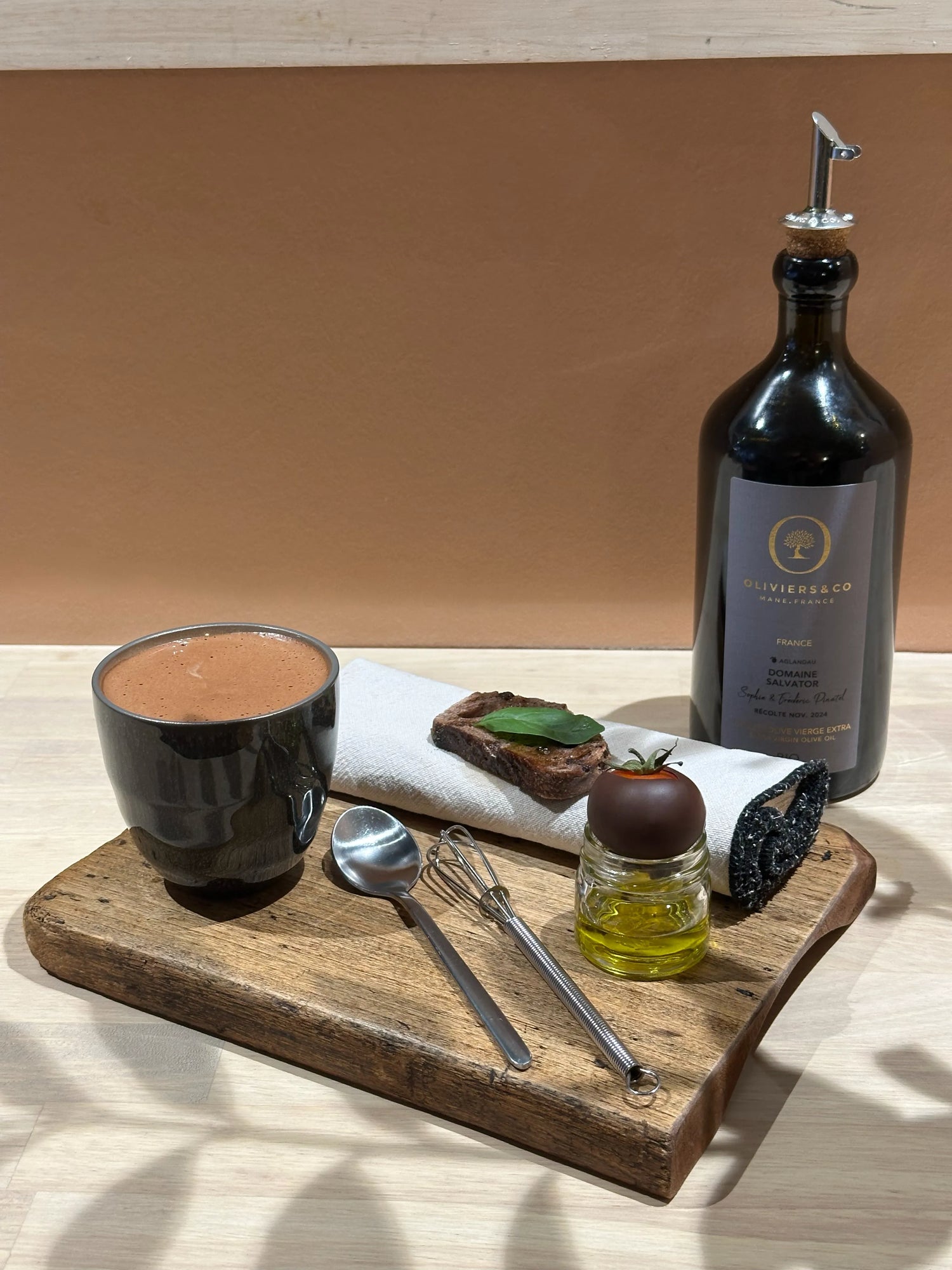 - Des tartines de pain au chocolat (oui oui, du pain... au chocolat) toastée à l'huile d'olive Bio AOP Haute-Provence du domaine Salvator
