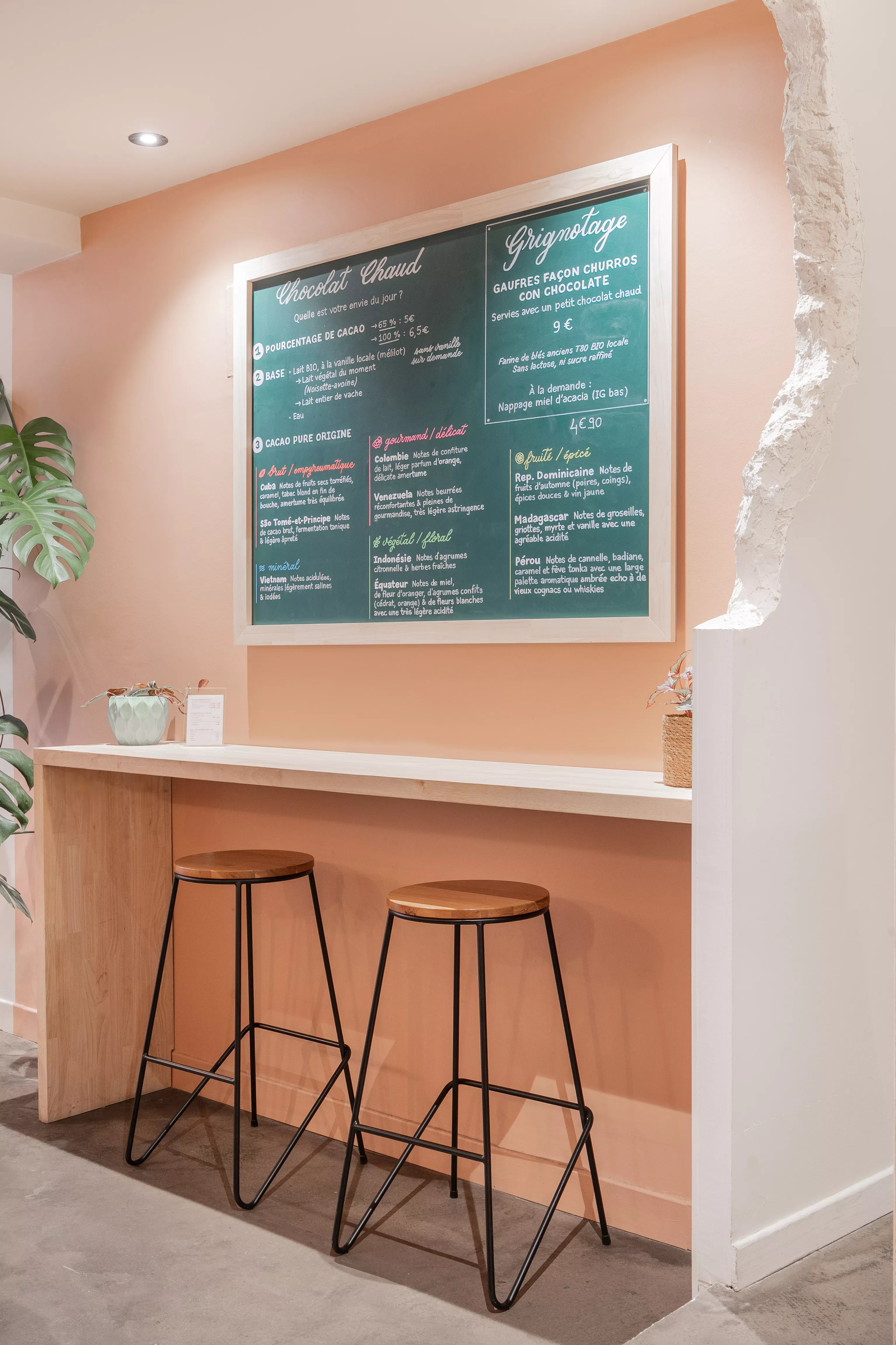"Je souhaite que chaque client se sente comme chez lui lorsqu'il vient au salon. C'est pour cela que j'ai créé un espace cosy et chaleureux. Un endroit pour s'asseoir, discuter, déguster et apprendre. Tout cela grâce au chocolat."